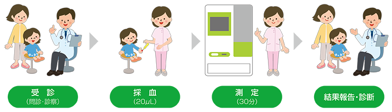 指先から1滴だけ採血するので、痛みが少なく、小さなお子さまでも安心して検査を受けていただけます。