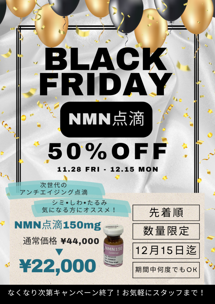 当院では、NMN点滴がブラックフライデーSALE中です🎉